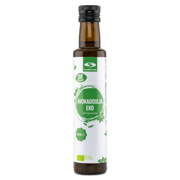 Healthwell Avokadoolja EKO kommer från avokador (Persea gratissima) som vuxit under ekologiska förhållanden i Kenya. Oljan är kallpressad vilket innebär att alla näringsämnen är bevarade. Healthwell avokadoolja kommer i en mörk flaska som bidrar till ökad hållbarhet och motverkar härskning.